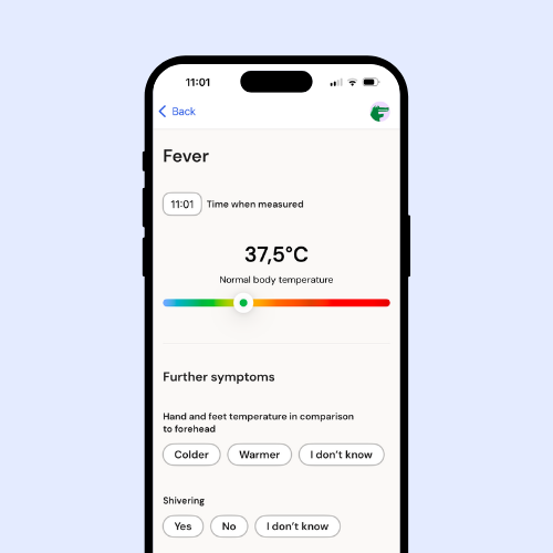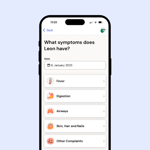 Use our intuitive symptom tracker to record your child's illness and use this information as a basis for communication with your pediatrician.